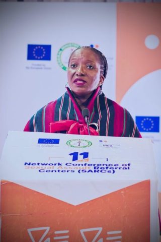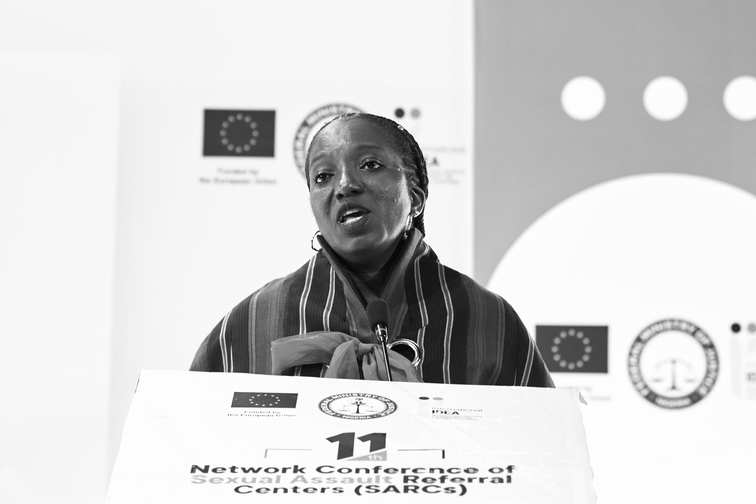 On December 2nd, 2025, Professor Fatima Waziri-Azi delivered a powerful keynote address on the growing threat of technology-facilitated gender-based violence (TFGBV) in Nigeria, at the 11th SARC Network Conference organized by International Idea in collaboration with the Federal Ministry of Justice, with funding from the European Union.